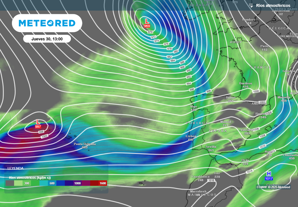 Un tren de frentes dejará lluvias muy cuantiosas en la vertiente atlántica