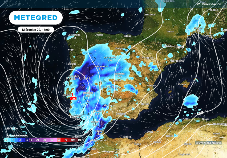 Estamos a las puertas de un nuevo cambio de tiempo en España, y que se traducirá en lluvias casi generalizadas debido a la llegada de un tren de borrascas y frentes procedentes del Atlántico. Según las últimas previsiones del modelo de referencia de Meteored, esta circulación se mantendrá toda la semana, e incluso podría extenderse hasta el comienzo de la próxima.